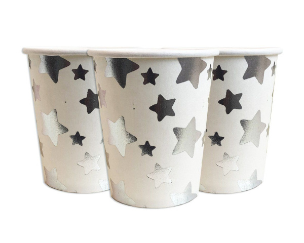 —Набор стаканов бумажных 'Белые. Серебрянные звезды' 10 шт.;уп.