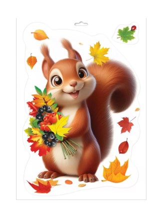 —Двусторонняя наклейка, 'Белочка с осенним букетом', 0201135