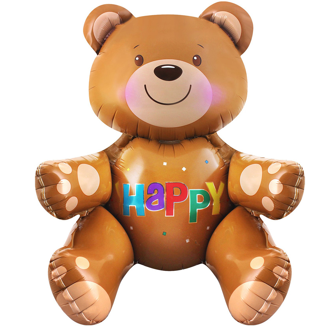 —Шар (22''/56 см) Фигура 3D,Сидячий мишка, Коричневый, 15198
