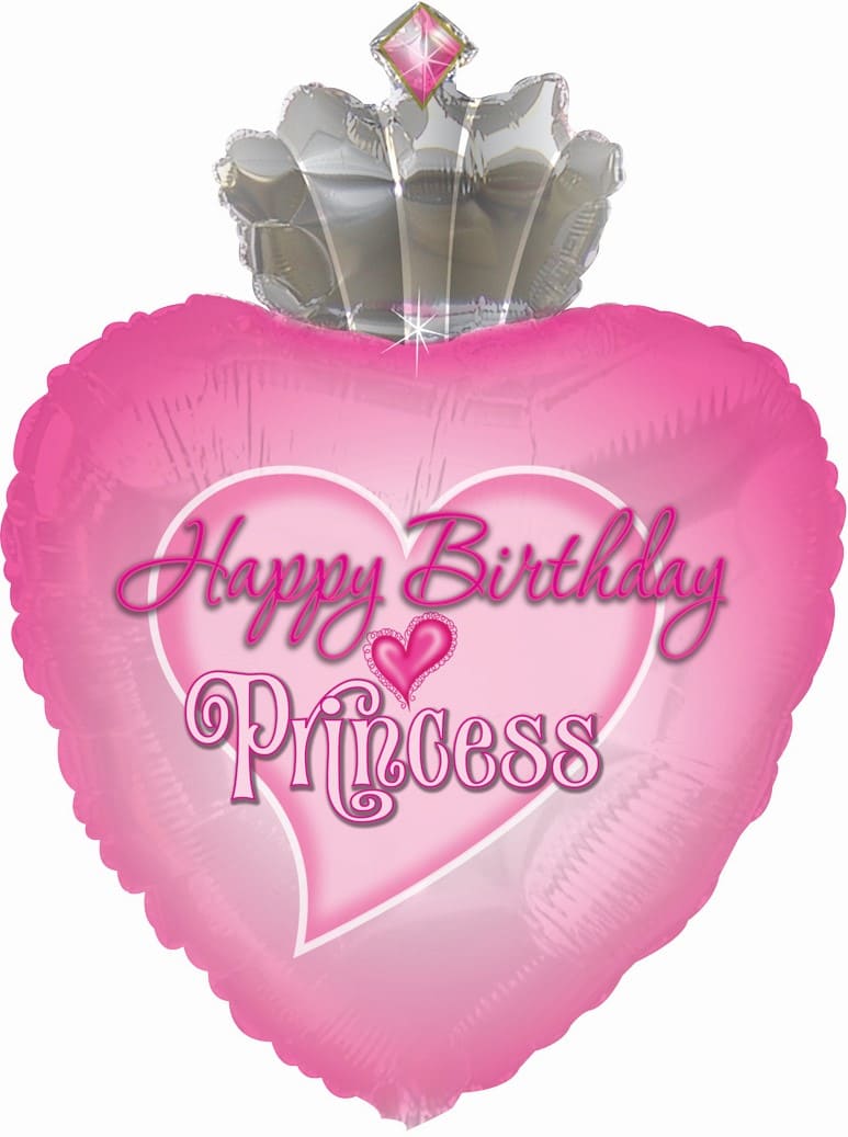 —Шар фольга (30'';76 см) Сердце, С Днем Рождения, Принцесса, Розовый, 434164