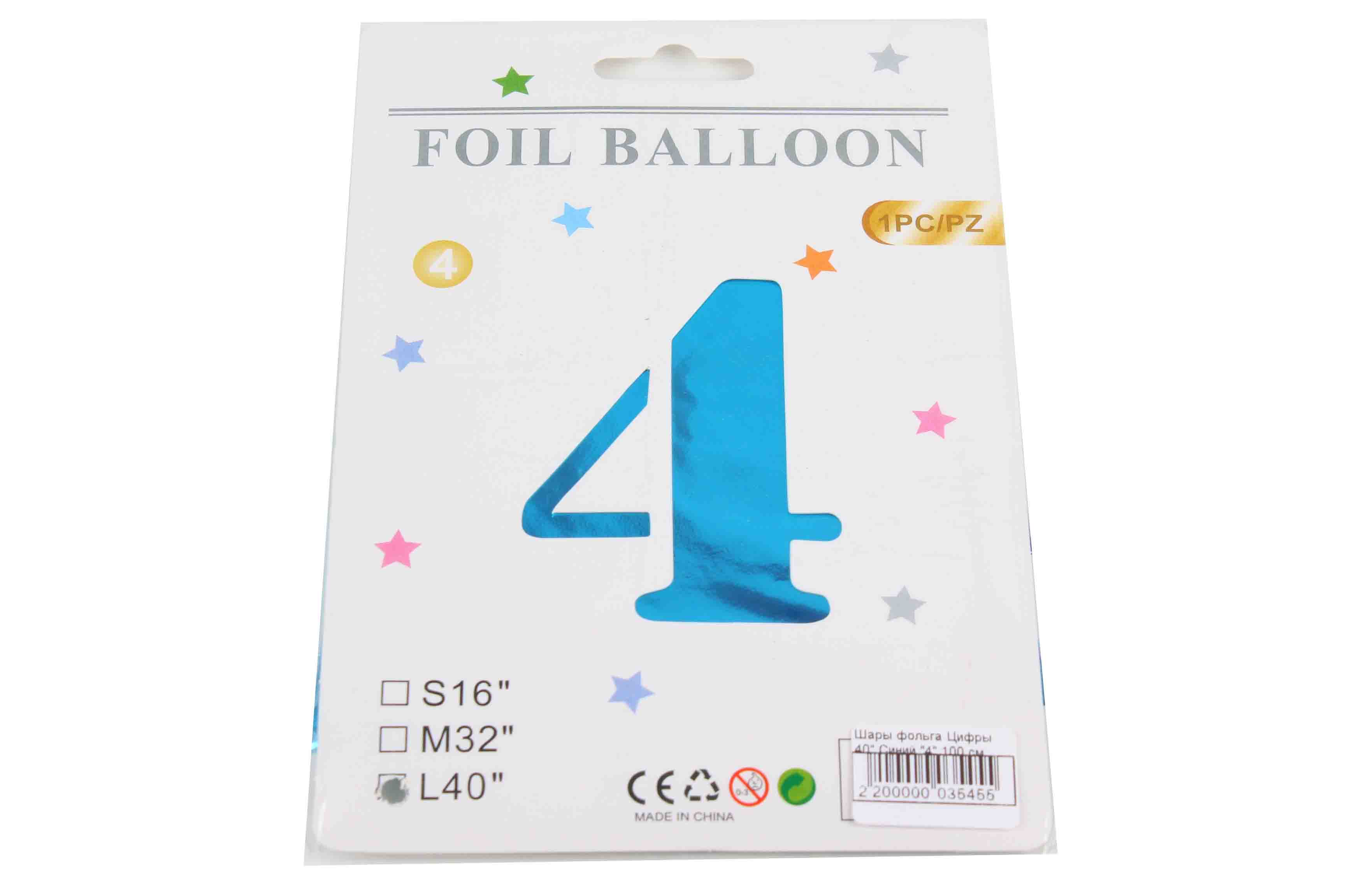 Шары фольга Цифры 40' Синий '4' 100 см.