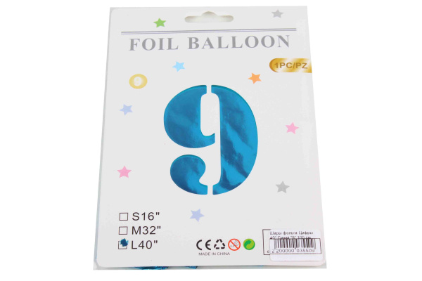 Шары фольга Цифры 40' Синий '9' 100 см.