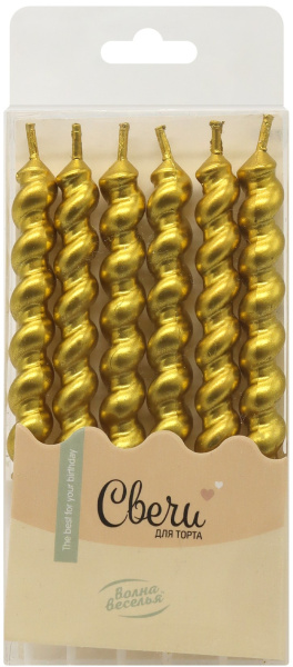 —Свечи Роскошная серия, золото, металлик, 0,7х7+3 см, (6 шт;уп), 802944
