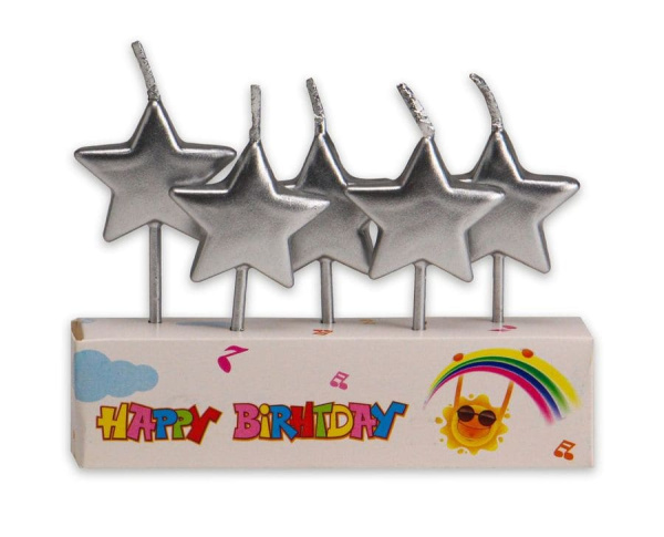—Свечи для торта Миленд на пиках Серебряные звездочки, 5 шт, пластик уп., С-2541