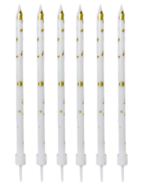 —Свечи тортово-коктейльные Белые с золотом с держателями, 192055