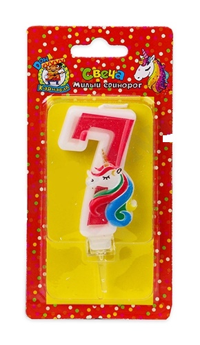 —Свеча для торта 'Цифра 7. Милый единорог', Миленд, картон. уп., европодвес, С-5941