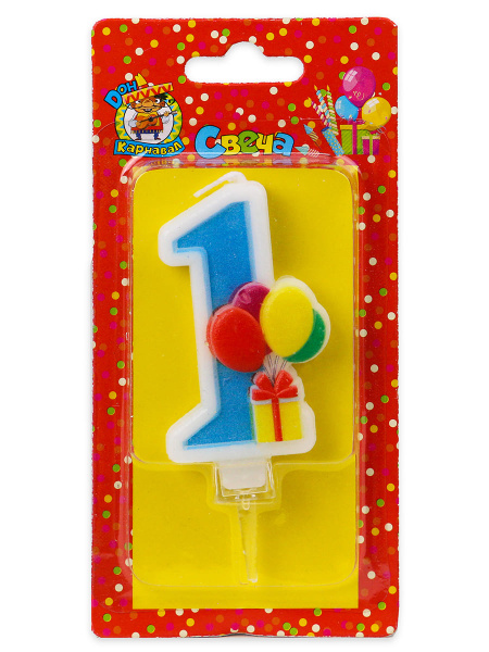 —Свеча для торта 'Цифра 1. 'Весёлый праздник', Миленд, картон. уп., европодвес, С-5925