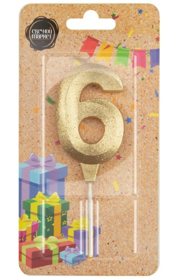 —Свеча на шпажке «Грань» цифра 6 золото, 2976