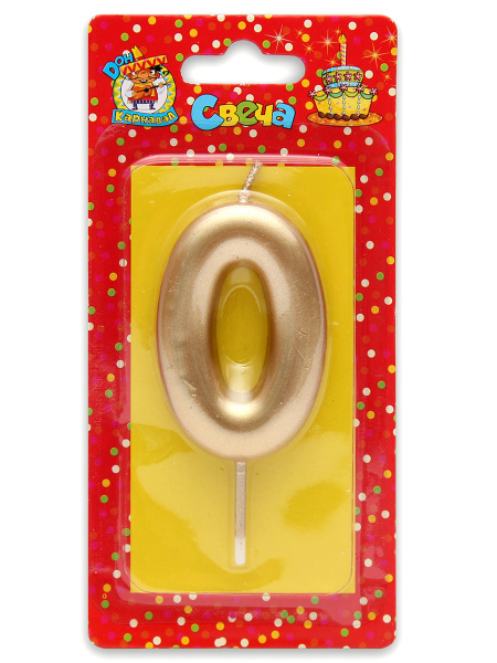 —Свеча для торта 'Цифра 0. Золотая' Миленд, картон. уп., европодвес, С-1798