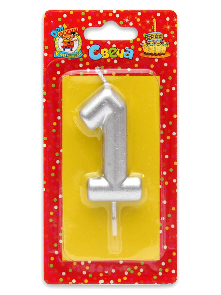 —Свеча для торта 'Цифра 1. Серебряная' Миленд, картон. уп., европодвес, С-1809