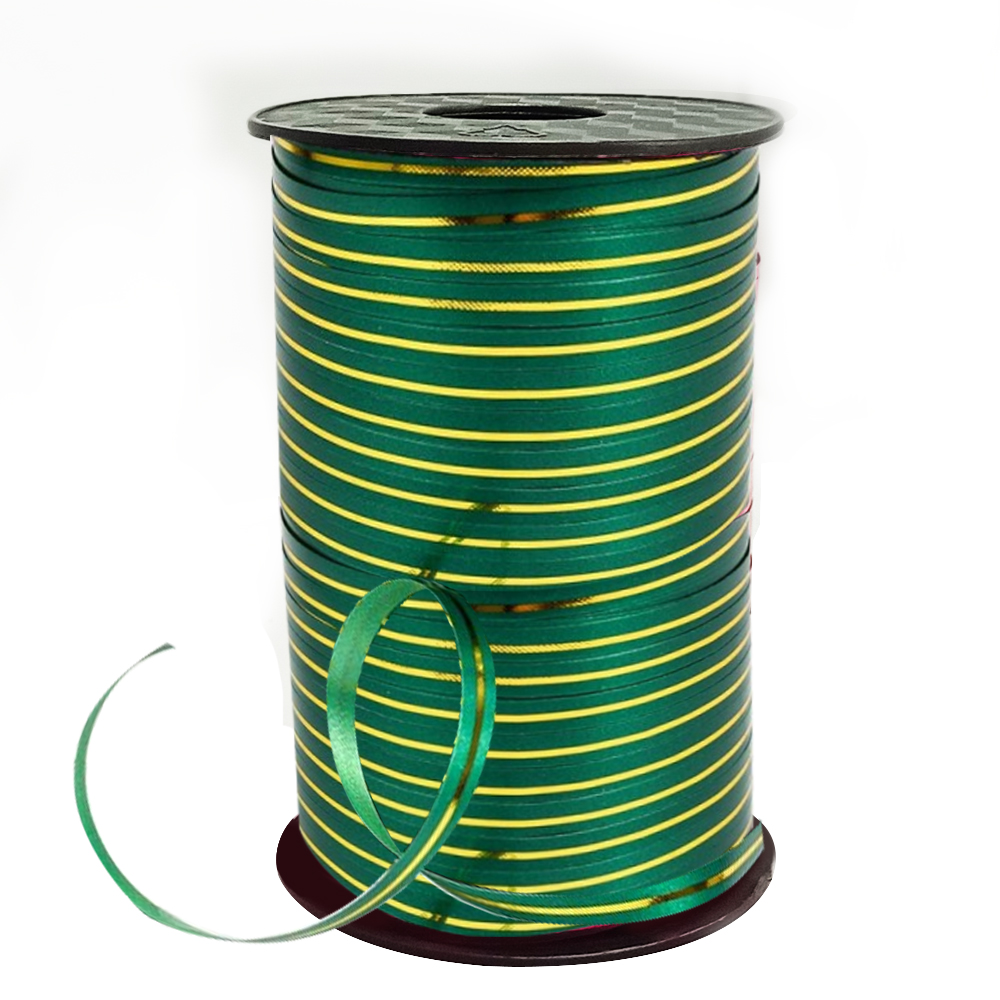 —Лента подарочная с золотой полосой, зеленая 5х250 мм, S-02