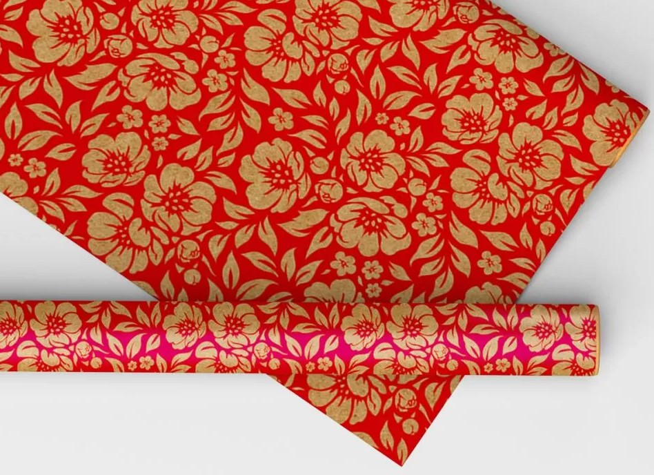—Упаковочная бумага цветы на красном 2 листа, 15.11.01015