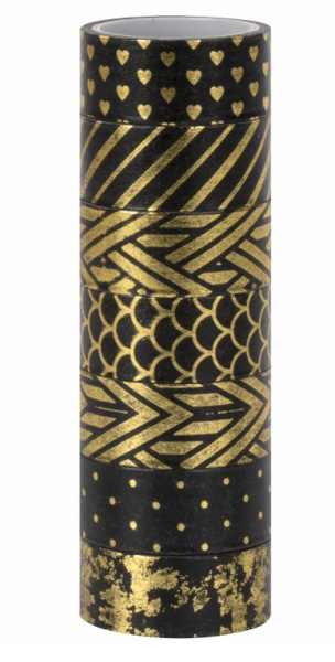 —Клейкие WASHI-ленты для декора с фольгой 'ЧЕРНОЕ ЗОЛОТО', 15 мм х 3 м, 7 шт, ОСТРОВ СОКРОВИЩ, 661714