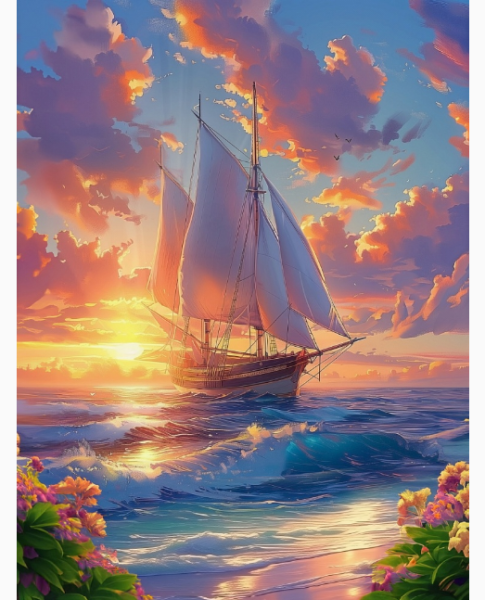 Холст с красками 30х40 см, Парусник в лучах солнца. арт.Х-5179