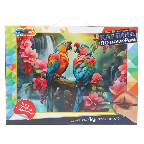 —Картина по номерам 30х40 см, Попугаи и водопад, МУЛЬТИ АРТ, 392586