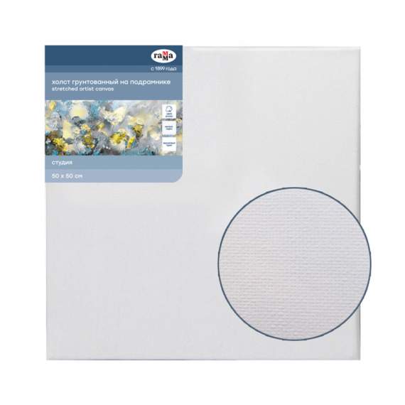 —Холст на подрамнике Гамма 'Студия' 50х50 см., 100% хлопок, 280г;м2, мелкое зерно, 280818_19