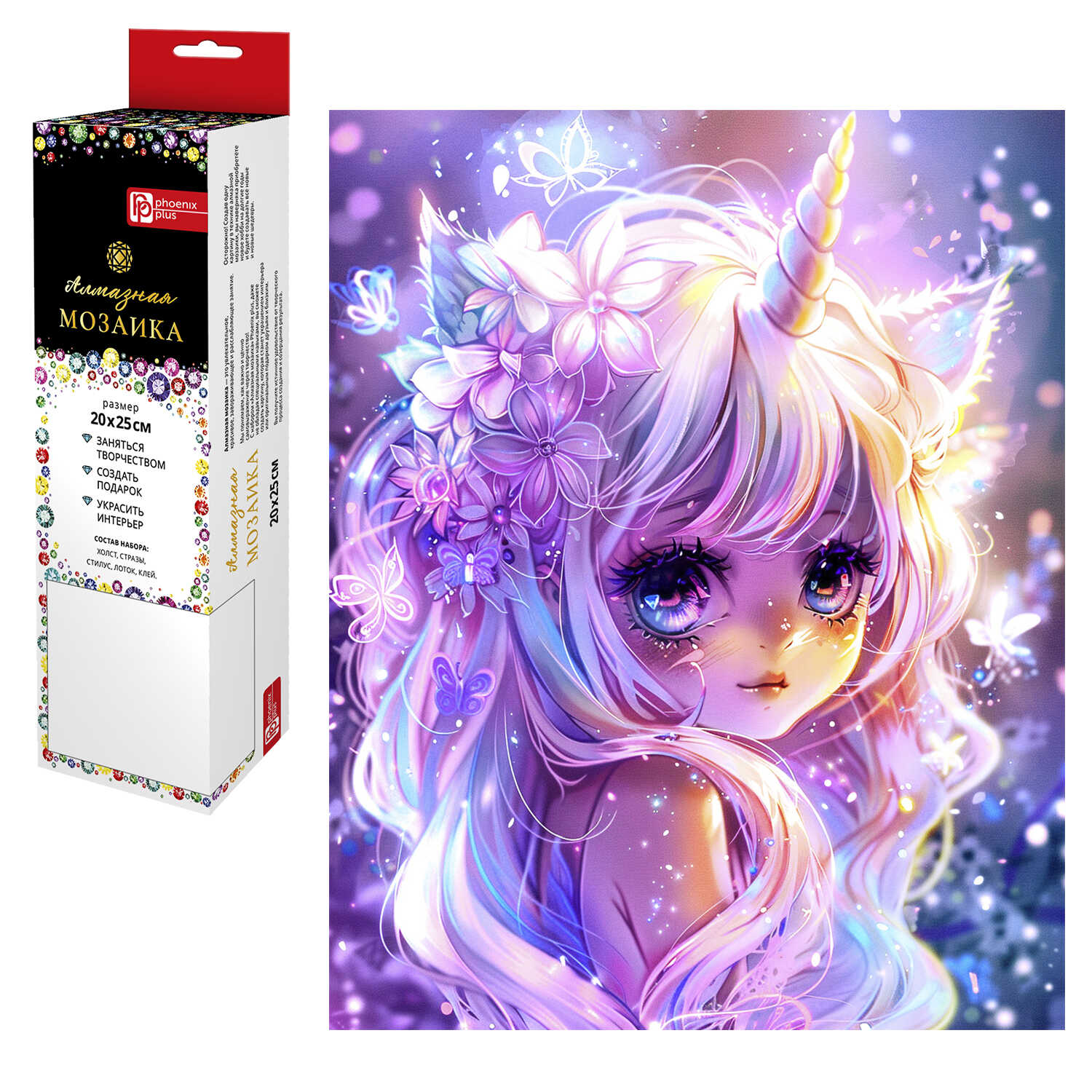 —Алмазная мозаика ДЕВОЧКА-ЕДИНОРОГ, 20~25 см, 18 цветов страз, 68584