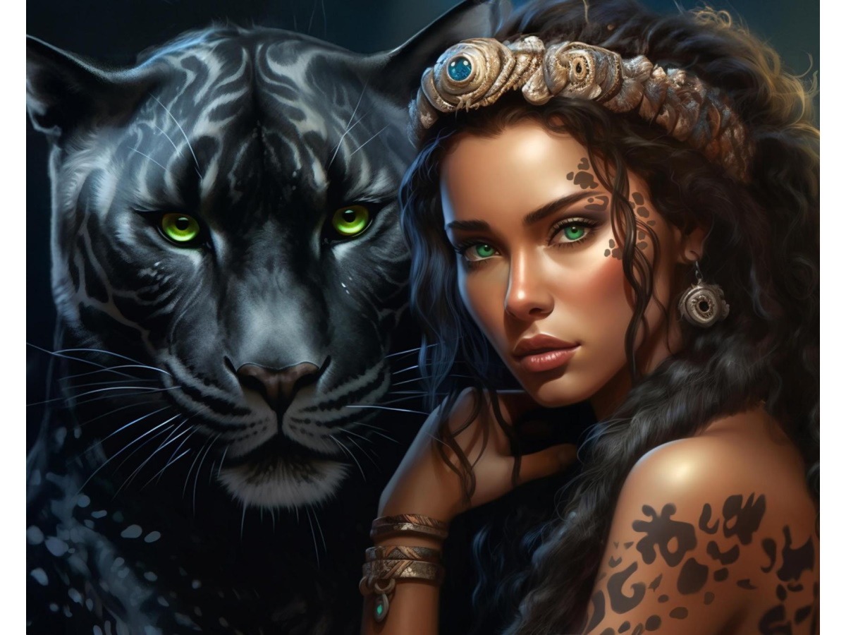 —Алмазная мозайка (клас) 40х50 см, с подр, Зеленоглазый защитник, НД-0647