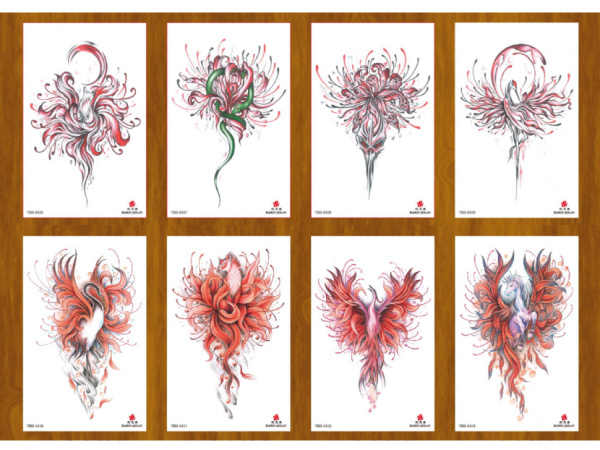 —Татуировка-наклейка (12х19 см) Животные в красных цветах, ТА-1756